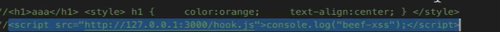 当发现对方的网站中存在XSS漏洞,可以通过script代码构造,嵌入beef框架,从而达到监视